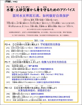 该手册图文并茂,浅显易懂地对预防水灾和泥石流灾害以及灾害发生时该如何应对进行了说明。