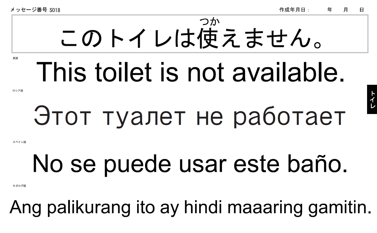 仙台市政府将(一财)自治体国际化协会制作的内容,根据仙台市内避难所便于使用的形式进行更改后印刷而成。