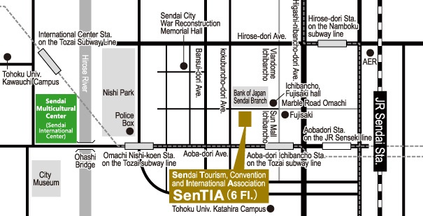 Aoba-dori Ichibancho Station (Sendai Subway Tozai Line) two minute walk from north exit #1.