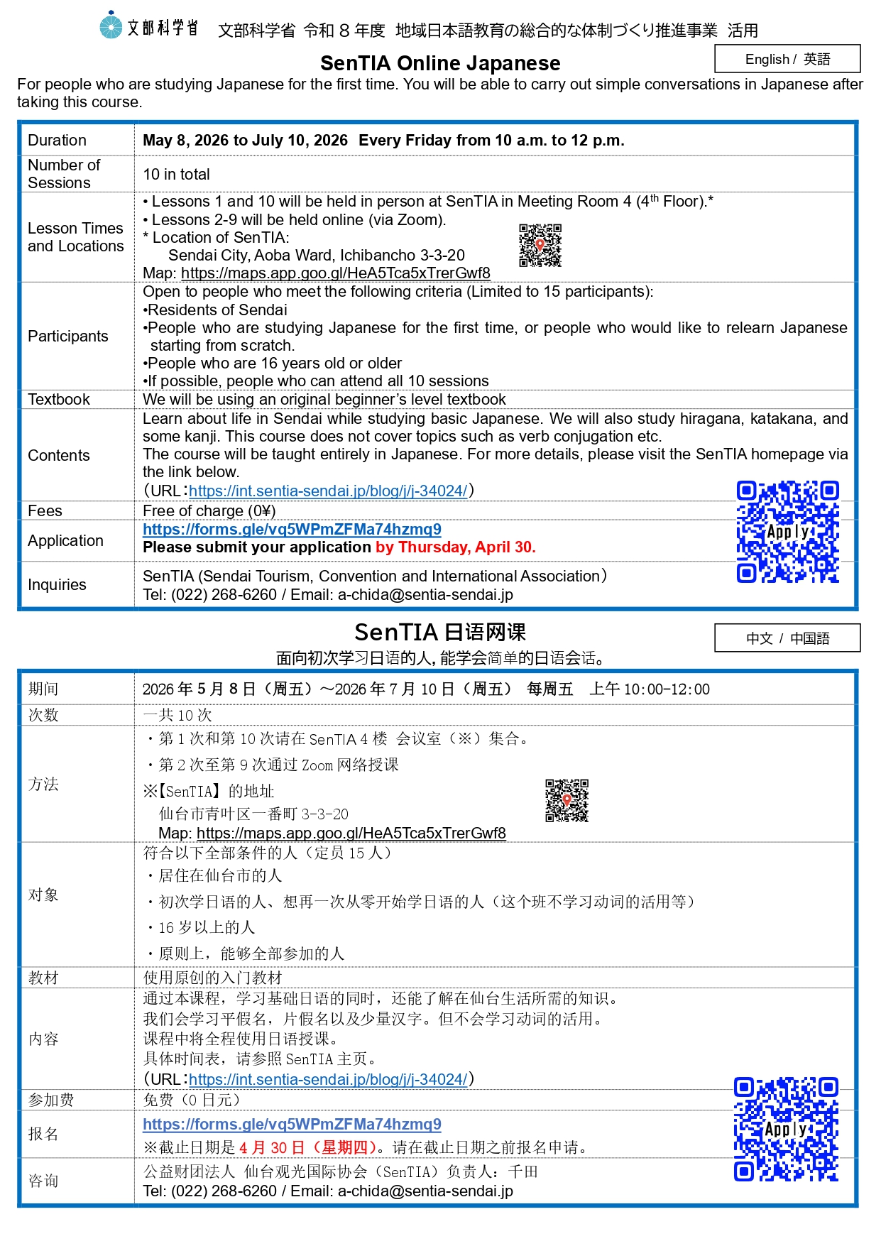 ※截止日期是4月30日(星期四)。请在截止日期之前报名申请。