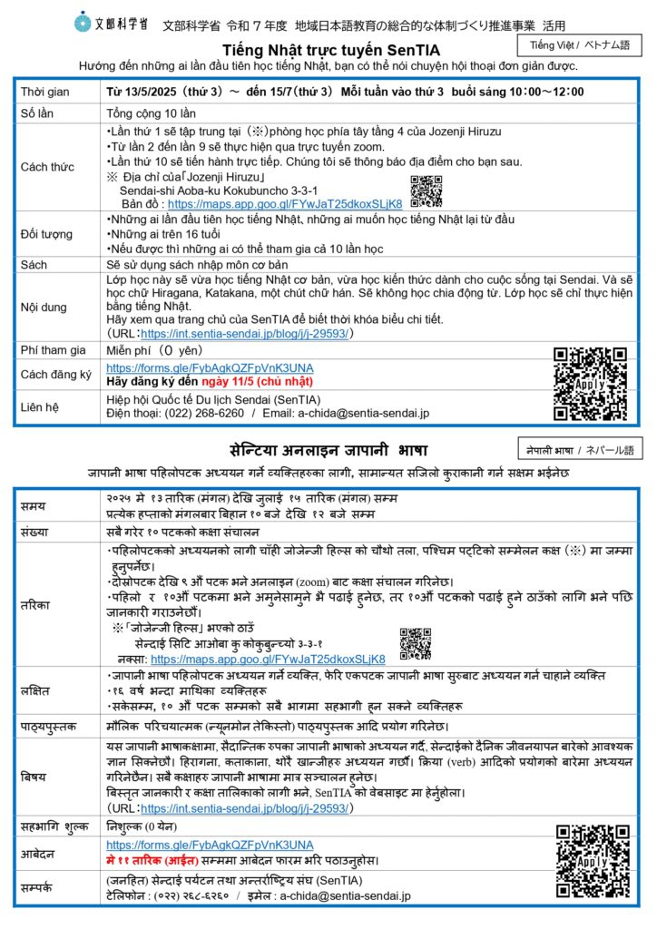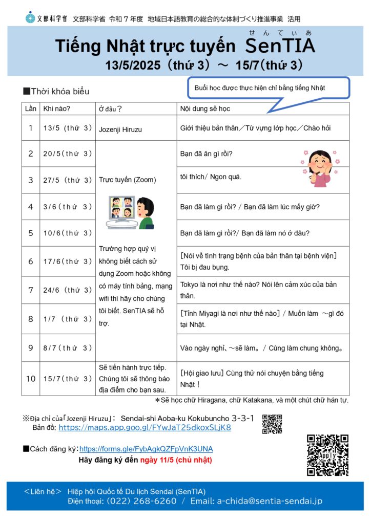 【SenTIA】Tiếng Nhật trực tuyến SenTIA(Từ 13/5/2025 ~đến 15/7)(SenTIAオンラインにほんご)