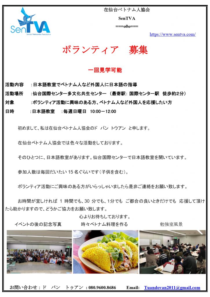 【情報提供】ボランティア募集のお知らせ(SenTVA日本語教室)